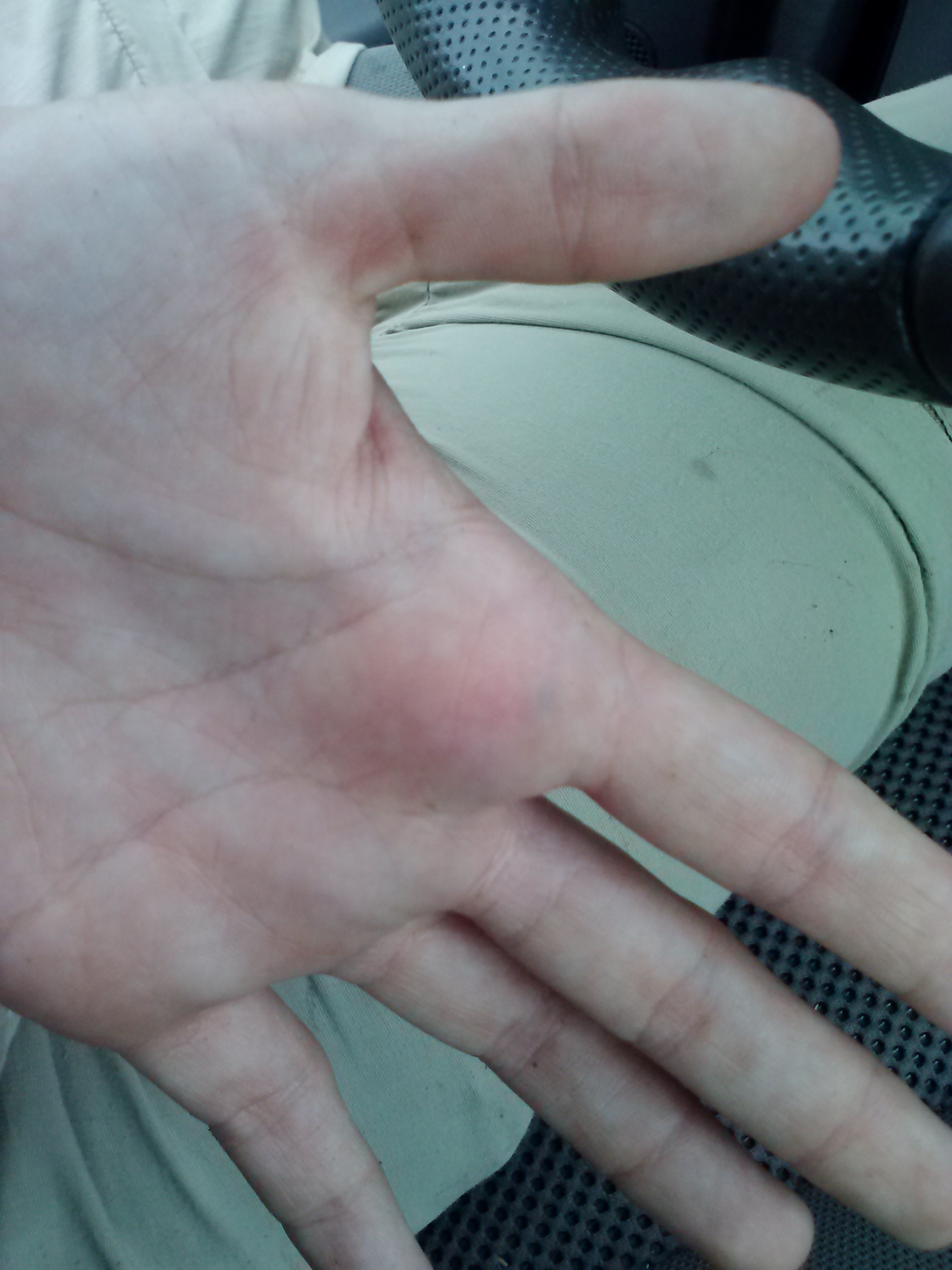 All started out well this morning – we stopped at a river site, surveyed, caught a bunch a big and beautiful bees. Great! Then we went to the second river site, put down our bee bowls. All still good. Made it to the farm site, put the bowls and started sweep netting, and then the fun began. We usually sweep for 30 minutes, but, about 25 minutes into the sweep survey, I got a call from Loreli. I was kind of confused since I had just seen her walking down, and usually we focus on bees, and not phone calls while surveying. Nonetheless, I answered and she told me she had just gotten stung by a bee (now think it was a wasp) and was on her way to the office. This was her first time getting stung by a bee, wasp or anything, so we both had no idea how she’d react. So I quickly made my way to the office. When I got there, she was OK, but her hand was quite swollen where she was stung.