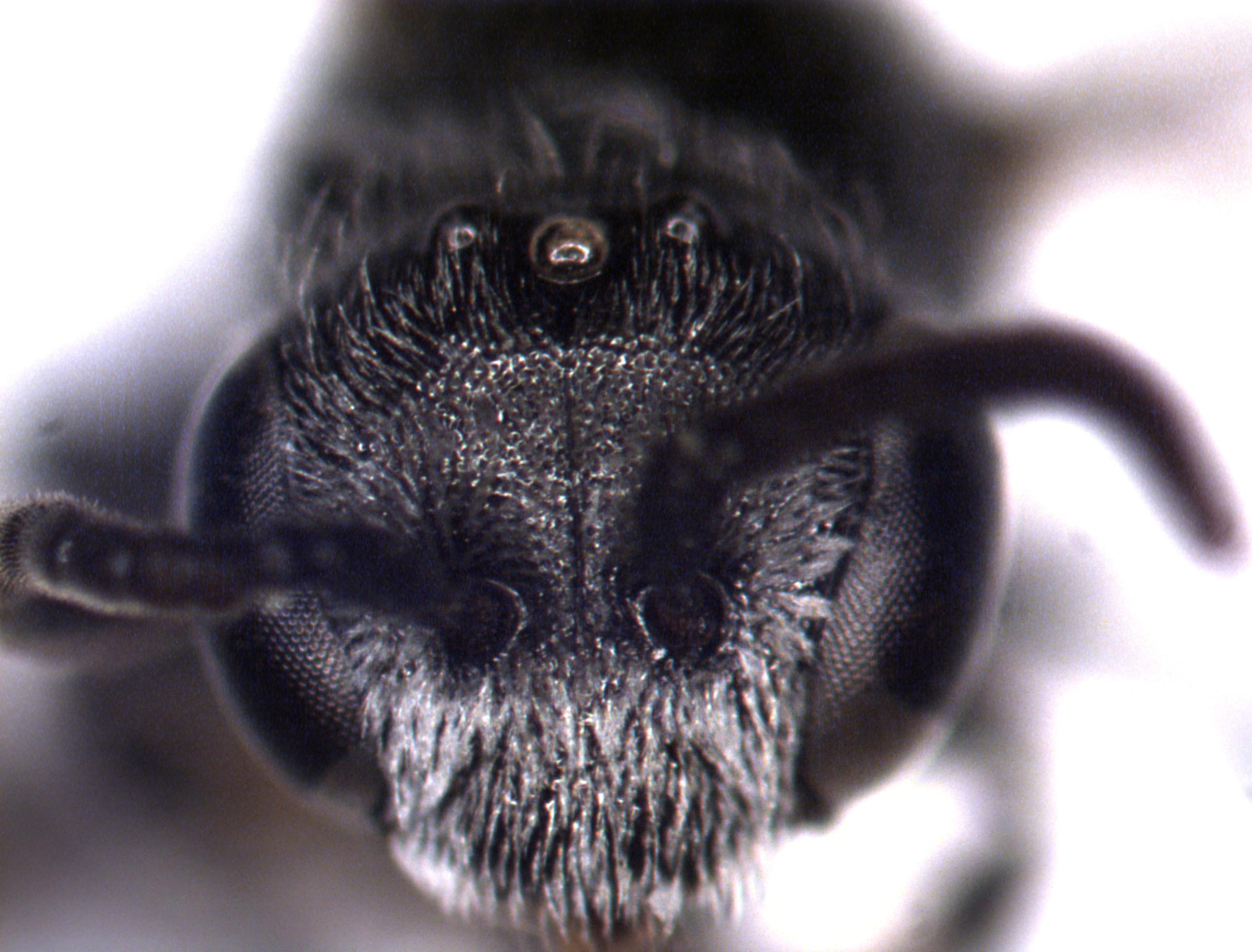 Female Ceratina guarnacciana species collected in a pepper field using bee bowls. Picture take by Andrew Ernst NCSU
