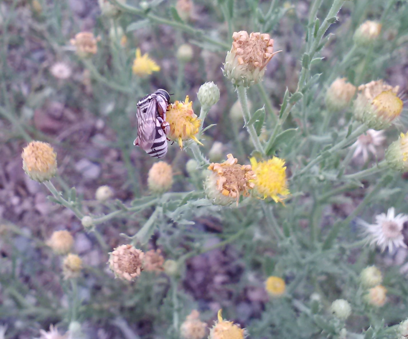 We went on to another site, 25 miles south of Aminas, and as we finished there and wanted to go to see a bee nest that is commonly shown to students of the Bee course, the rain started. So we turned around, and went East of Aminas. On the drive to our third and final collection site, we saw two or three border patrol officers pulled over on the side of the road. Didn’t see much, but later we found out that a man had been spotted and picked up by border patrol there. He apparently was smuggling drugs into the country, and hadn’t eaten for 2 days. It’s so sad to think about people risking their lives in the middle of the desert, with so many dangerous animals, just for that…