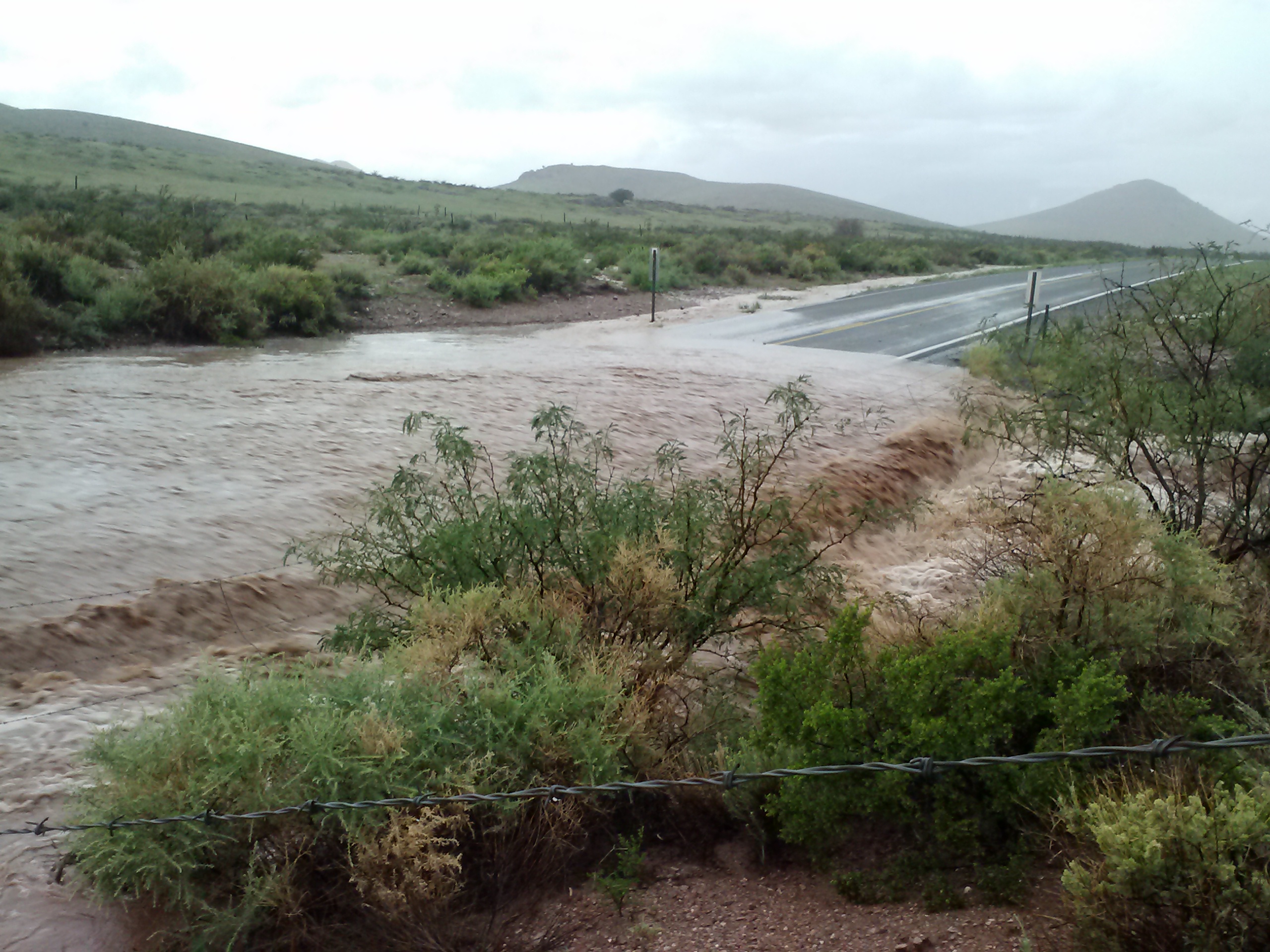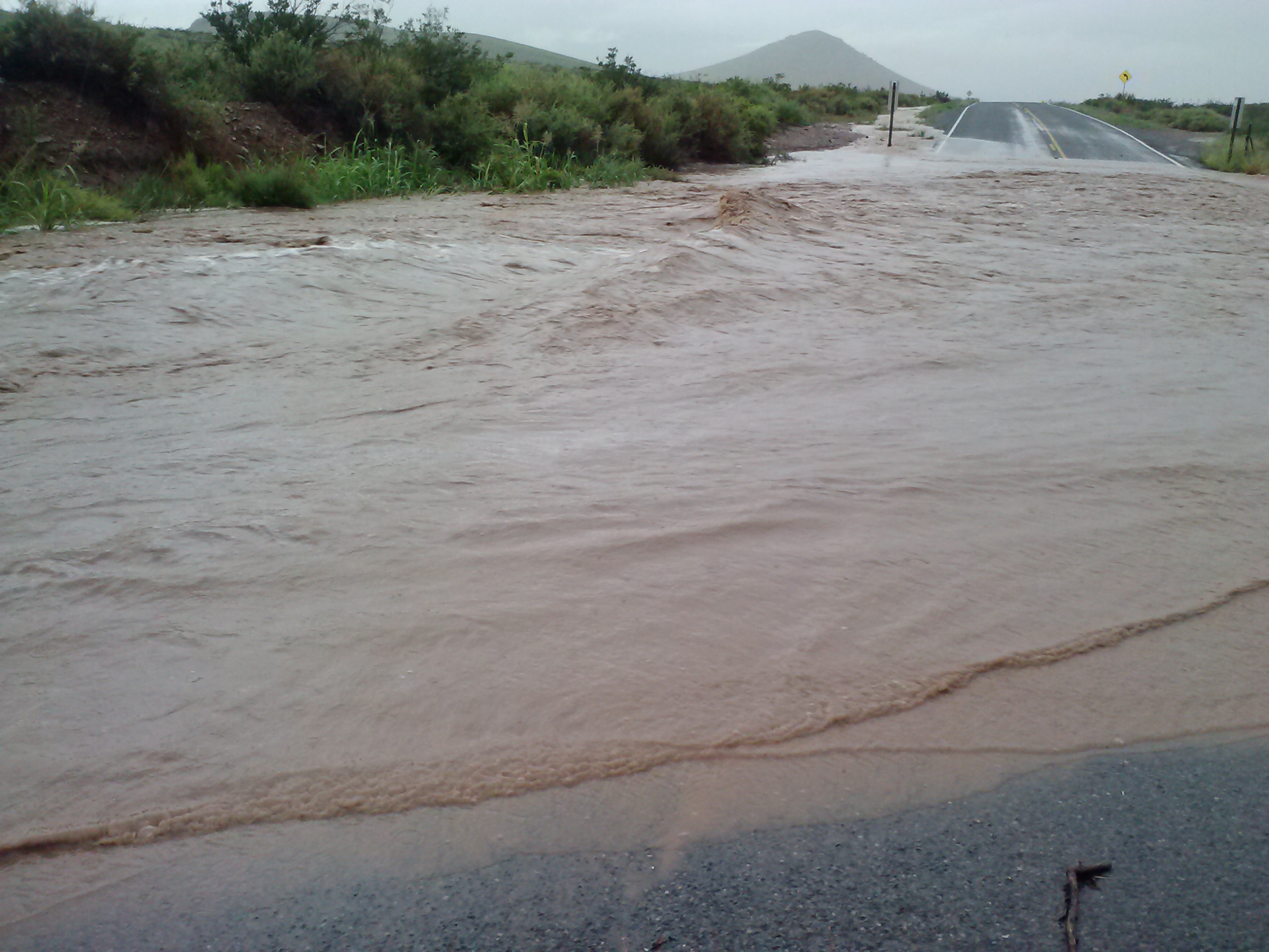 After we finished at our third site, we started our way back to the field house. On our way, we drove into more rain, and eventually got to a dip in the road where there was a flash flood. It’d been raining so much today that the water formed almost a river in the middle of the road. We thought it was pretty cool, so we got out and took some pictures!