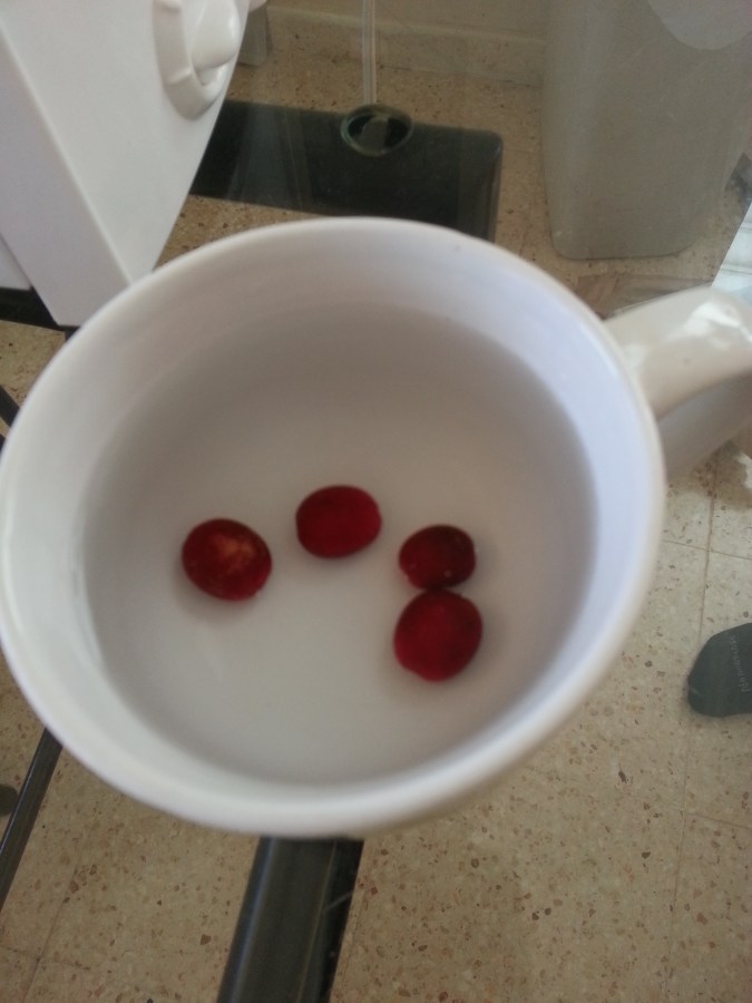 Once we get back to the field house, we put the berry in water, to see if any of them float. Floaters are excluded since that indicated a problem with the beans.