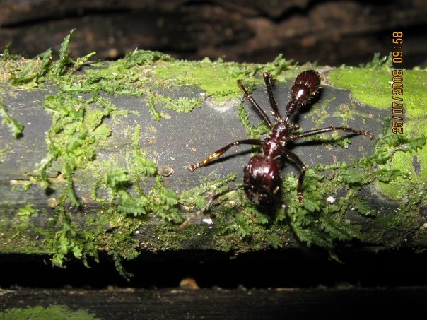 The isula ant, as it is commonly known in Peru is part of the primitive ant subfamily Ponerinae. This ant is also known as ‘bullet ant’ due to the extremely painful sting, which has been compared to being shot by a bullet. Another name given to it by the locals in Brazil, is “Hormiga Veinticuatro,” meaning that the pain from the sting can last 24 hours. Apart from being renowned for its viscous sting, it’s also characterized for its large size. Workers can reach up to 1 inch long (18-25 mm) and look somewhat like wingless wasps. Their stingers are morphologically similar to those of some solitary wasps, which were in fact the ancestors of ants.