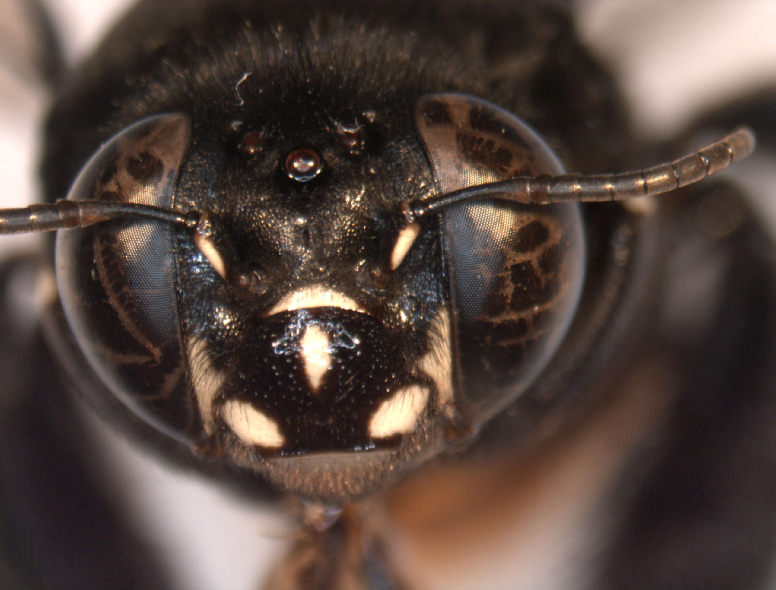 - Metallic steel blue abdomen and the last several segments, a contrasting red