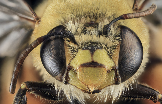 - The head and thorax are black with beige colored hair(except some yellow marks on the face)